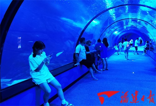 福建日报-新福建客户端讯(记者 萧镇平 文图)夏日炎炎,但在长泰天柱山欢乐大世界的海洋馆里,许多游客正吹着清爽的凉风观看海豚表演及美人鱼表演,这里成为周边许多群众的避暑、游乐的天堂。