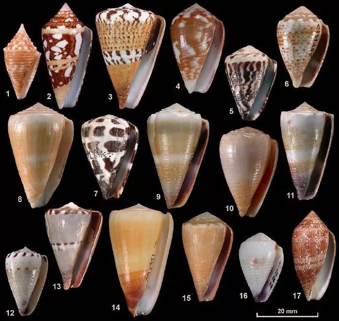 芋螺科(Conidae),英文名cone snail,还有个广为人知的俗名叫做“鸡心螺”,是属于新腹足目的掠食性海螺中最为人所熟知的一类,共有约800个已知的物种,广泛分布于世界各地的浅海地区。