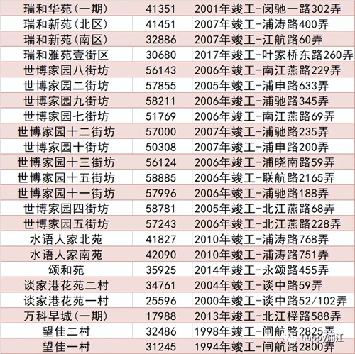 以下是小编根据知名房产网站统计的浦江镇大部分小区二手房价格数据(含小区:世博家园,滨浦新苑,汇秀景苑,金硕河畔,景江苑,景舒苑,闵浦新苑,浦江宝邸,浦江华侨城,浦江丽都,浦江瑞和城,水语人家,欣佳宝邸,永康城等),供参考!