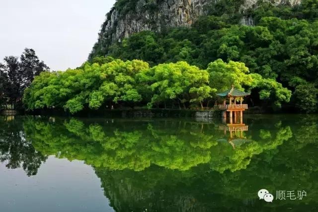 从七星岩西门入内,向东南方信步而行,一路风景如画。七星岩以湖光山色而著名。若逢天气晴好,巍巍青山印在盈盈绿水中,微风吹过,水面波光粼粼,带来丝丝凉意。走在湖边,看湖山相拥相印,极为惬意。