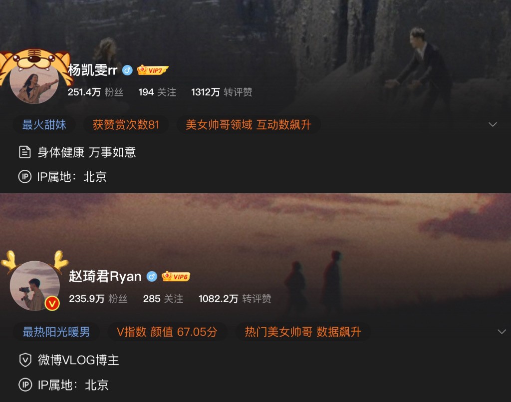 杨凯雯和赵琦君自参加节目以后,各自断断续续收获了两百多万的粉丝,他俩每次营业的动态都能得到上千上万的转载。