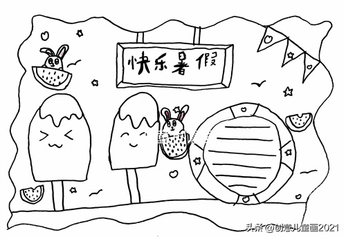 快乐暑假手抄报模板3,可打印线稿直接涂色~手抄报轻松完成