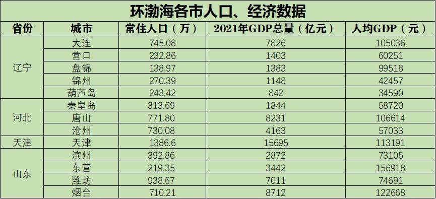 环渤海各市人口、经济数据