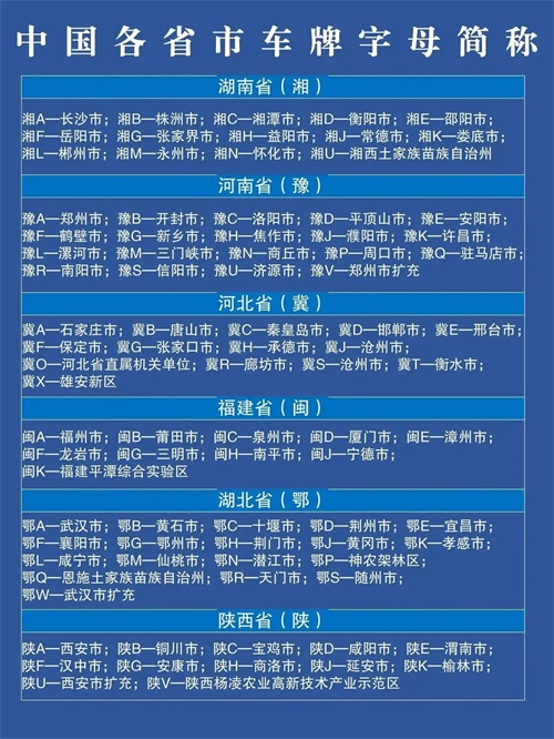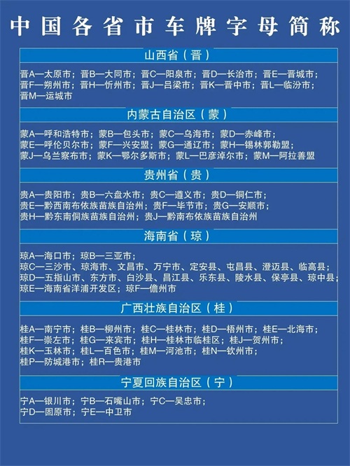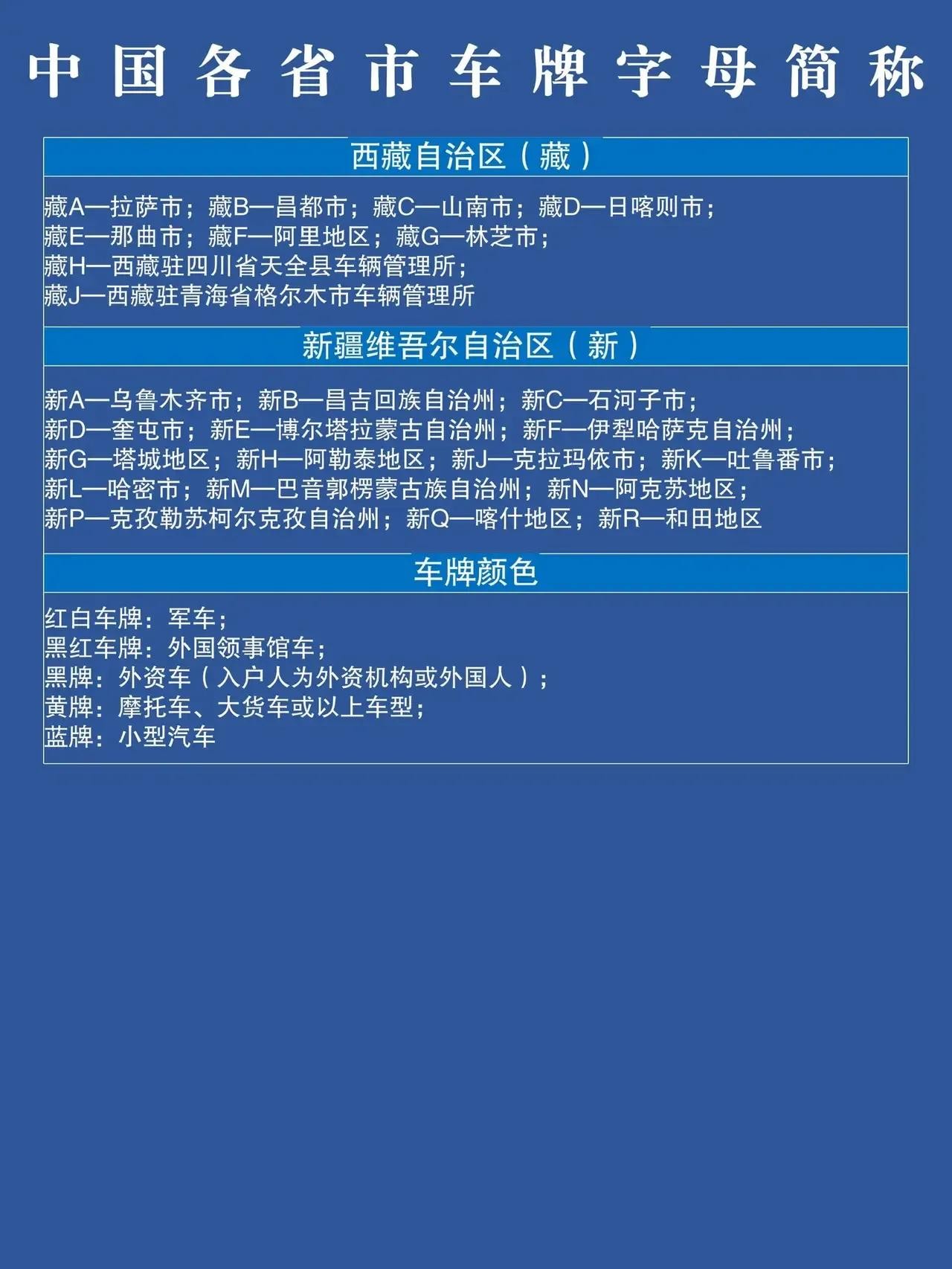 中国各省市车牌字母简称,终于有人整理出来了,收藏起来看看吧