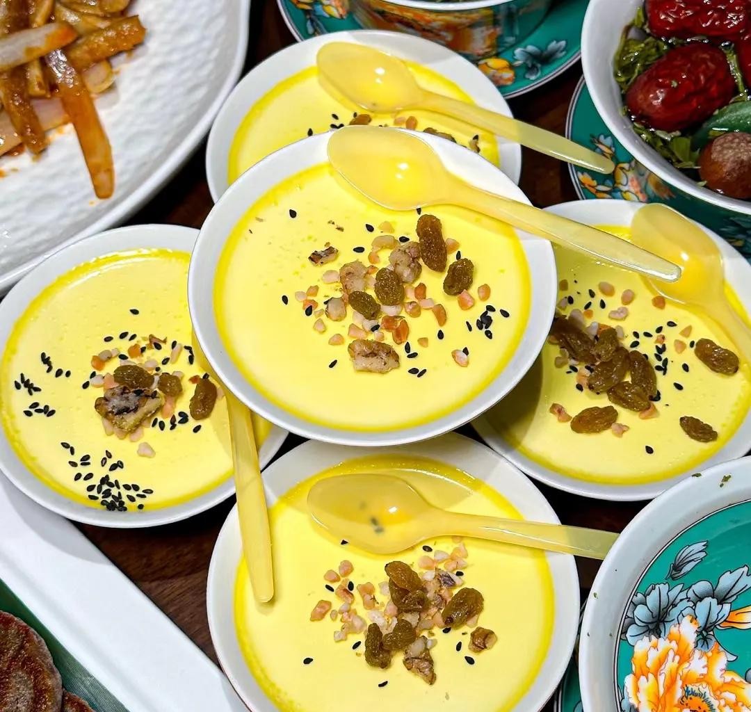 青海老酸奶是青海省最具代表性的传统乳制品之一,以其独特的口感和工艺传承闻名,堪称高原饮食文化的一张名片。其表面结金黄奶皮,口感浓稠酸甜,传统发酵工艺制成,多用牦牛奶。冰镇后是消暑佳品。