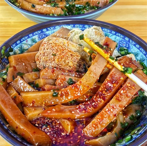 酿皮是青海西宁及西北地区极具特色的传统小吃,以其筋道的口感和酸辣的风味而深受当地人喜爱,尤其在夏季更是消暑解腻的佳品。酿皮由面粉制成,经过洗面、蒸制等工序,口感筋道有嚼劲。通常搭配辣椒油、醋、蒜泥等调料,酸辣开胃,风味独特。