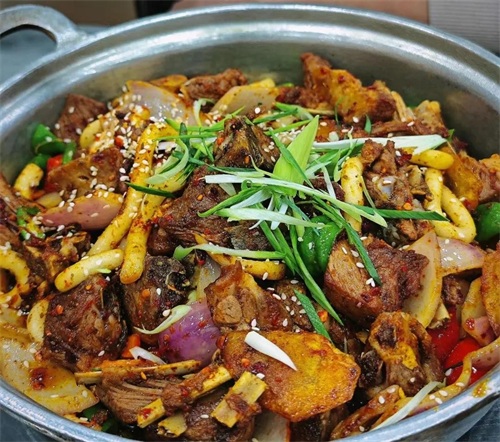 炕锅羊肉是西宁地区的传统特色美食,选用青海草原的绵羊肉,肉质鲜嫩无膻味,搭配高原特产土豆和青椒,使用特制的炕锅,在炭火上慢炖,使羊肉充分吸收调料的味道,汤汁浓郁,香气扑鼻,风味独特。