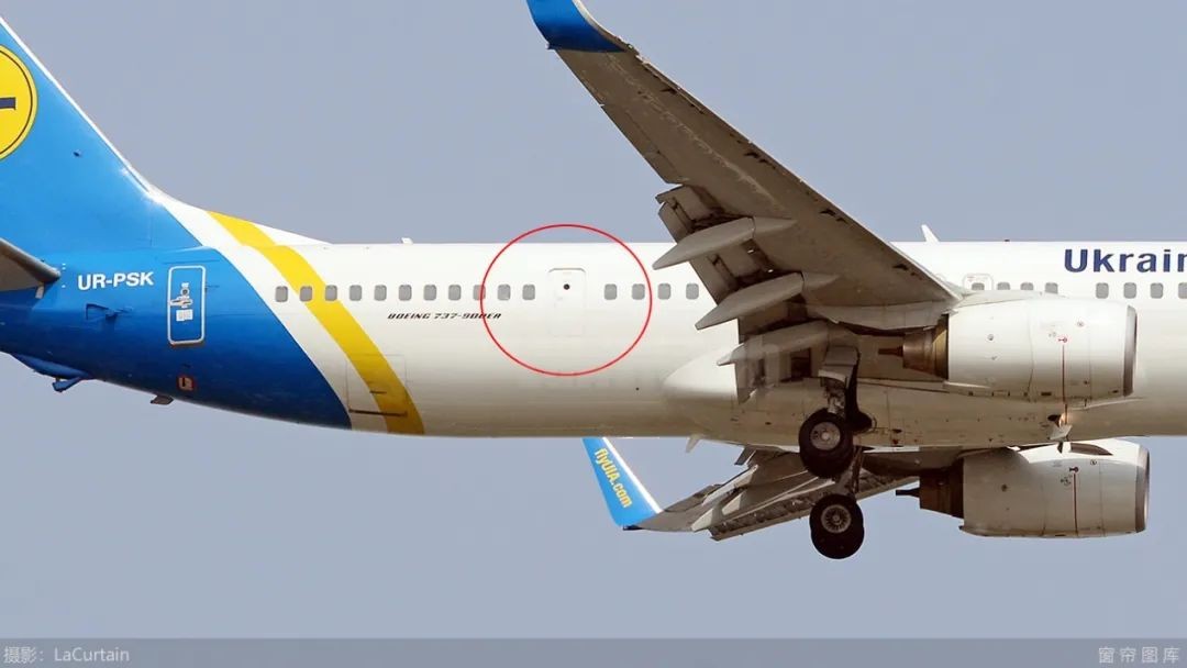 而波音飞机非常明显,因为波音737舱门上有一个小小的观察孔。如果没有这个孔而是普通的窗户,那就是假门;如果是小孔呢,那就是真门,如下图:
