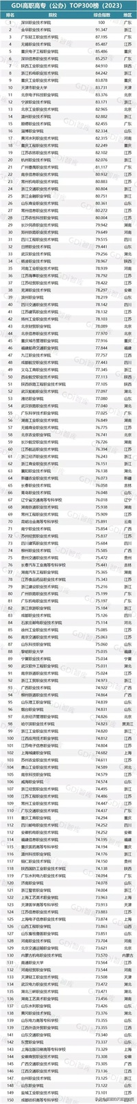 高职高专(公办)TOP300名单