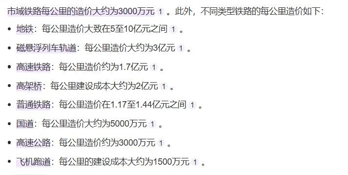 普通铁路:每公里造价约1亿-1.5亿元,是地铁的1/5。