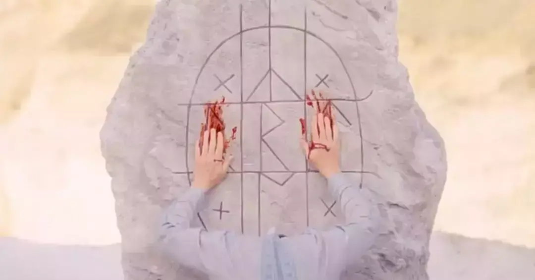 有人在神秘石碑上留下血手印。