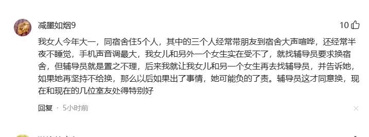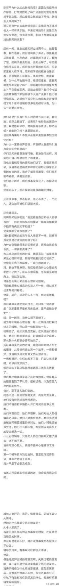 她说,她曾经找过辅导员,希望能换个宿舍,或者得到一些帮助,但是都被拒绝了。辅导员甚至对她说了一些伤害性的话,比如“你脑子有病”,让她感到更加委屈和无助。