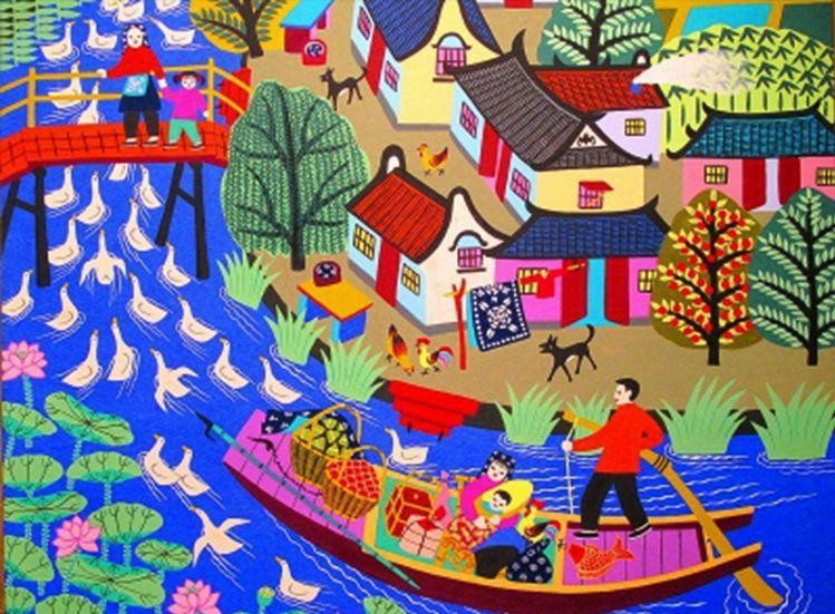 让世界了解朱泾古镇的,还有建国后的“金山农民画”,不仅引起了全国人民的关注,它还走出了国门,引发了世界性的关注。被誉为“中国最优秀的民间艺术”。2007年,金山农民画入选“首批上海市非物质文化遗产名录(民间美术类)”。