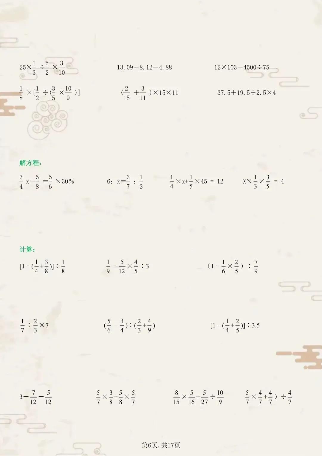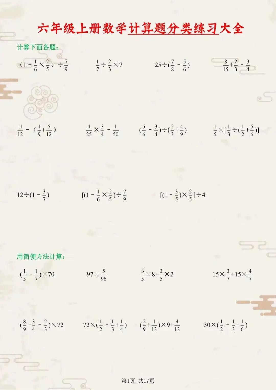 六年级的数学学习进入了一个新的阶段,计算题在这个阶段变得更加复杂和具有挑战性。为了帮助同学们更好地掌握六年级上册的数学计算,我们特意准备了一系列典型计算题训练。
