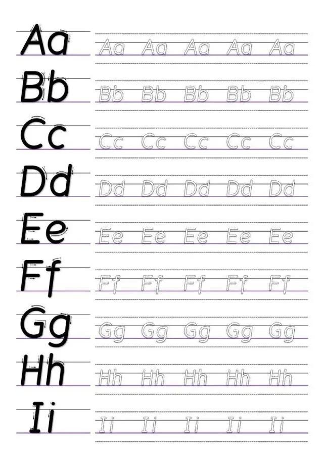 分享三张字母字帖给大家,可以打印出来贴墙上。