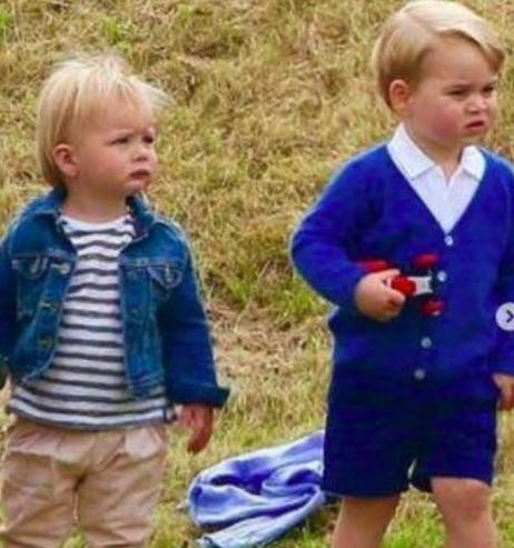米娅出现的时候总是一副“风中凌乱”的造型,表情是一个大大的“囧”字,特别可爱。她和“嫌弃脸”的表哥乔治小王子站在一起简直太可爱,两个行走的表情包。