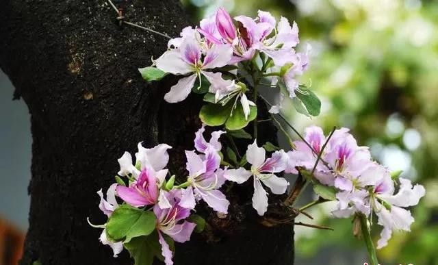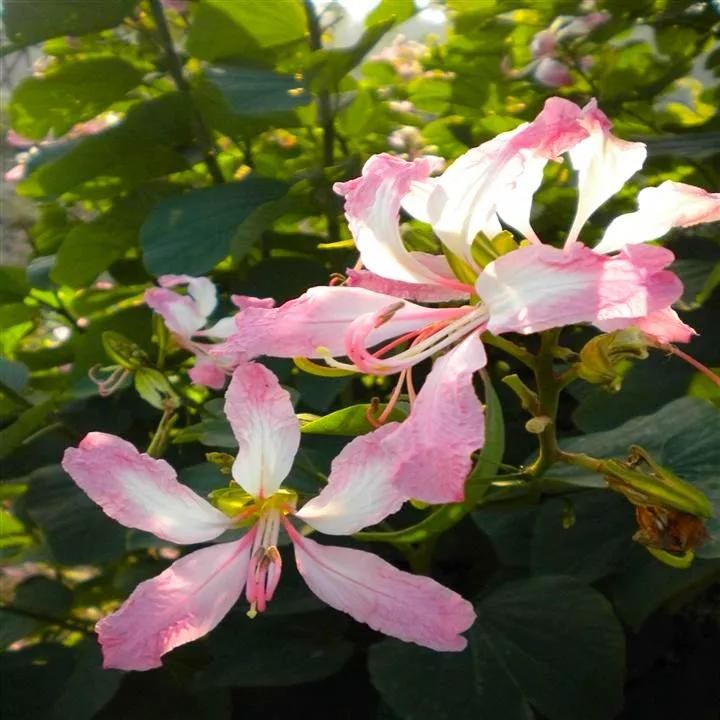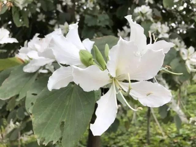 羊蹄甲树,常绿乔木,叶顶端2裂,状如羊蹄,故称羊蹄甲,花5瓣,形如兰花,又有近似兰花的清香气味,故有“兰花树”别称。