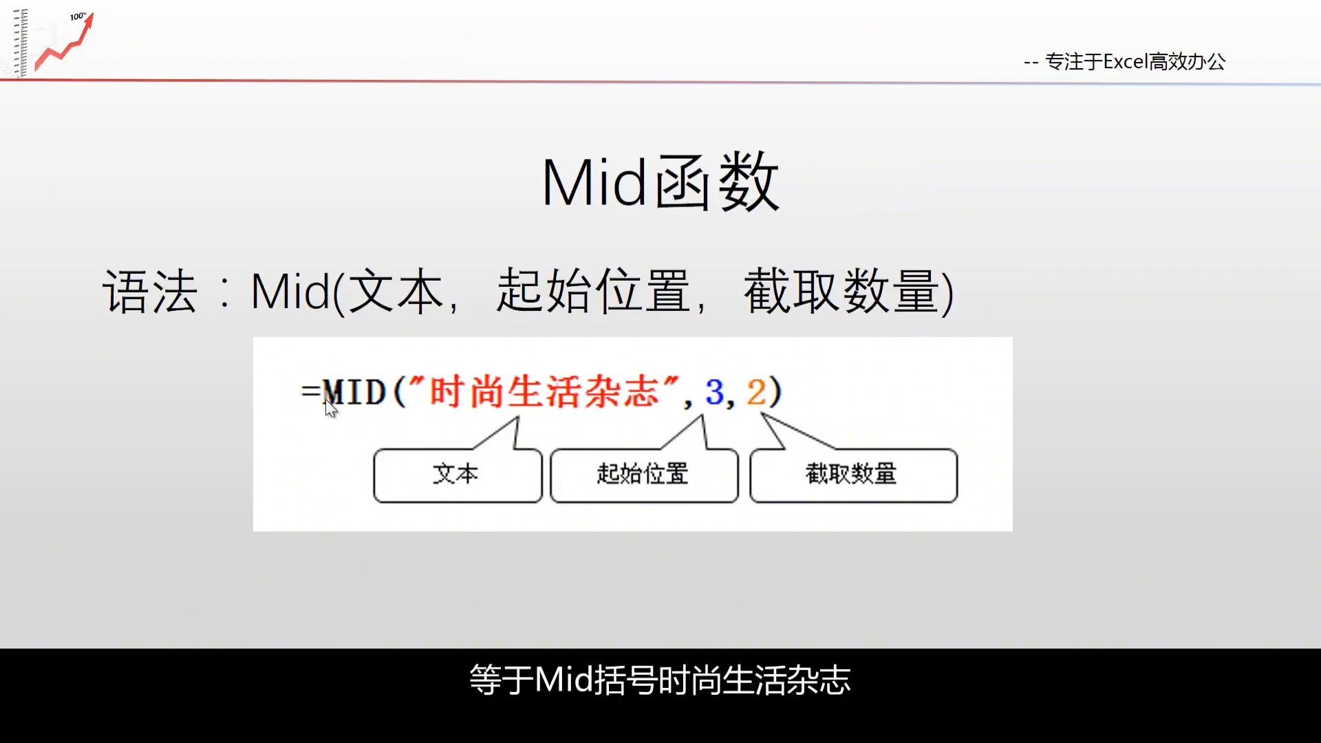 语法:Mid(文本,起始位置,截取数量)=MID("时尚生活杂志",3。