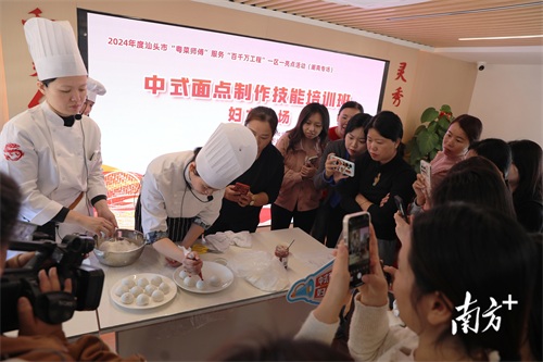 就在日前,由汕头市人社局主办,潮南区人社局承办的2024年度汕头市“粤菜师傅”服务“百千万工程”一区一亮点活动(潮南专场)在潮南区仙城镇党群服务中心举办,通过免费中式面点制作技能培训,提高当地居民生活品质,拓宽群众就业增收渠道,促进高质量充分就业。