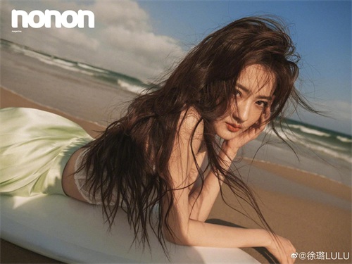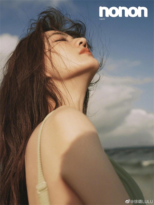 照片中的徐璐一袭飘逸卷发,以大海为背景,眼神略显撩拨,回眸的瞬间就是风种万种。