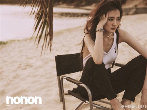 还有一张换成黑白底色,徐璐光着脚丫,显得休闲惬意,又飒又爽,像是落日黄昏下的意景。