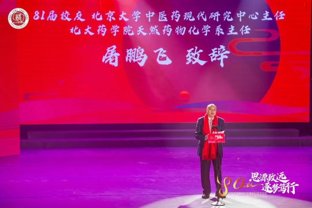 北京大学中医药现代研究中心主任、北大药学院天然药物化学系主任屠鹏飞先生作为高校校友代表发言。