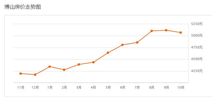 博山10月二手房均价 5069 元/平方米博山9月二手房均价 5119 元/平方米环比上月下跌 0.96% ↓,同比去年同期上涨 24.58% ↑