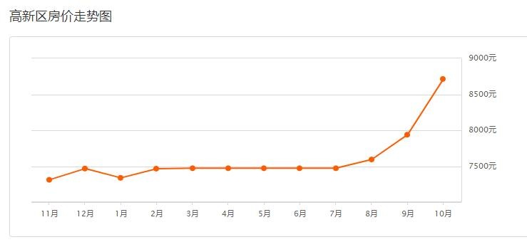 高新区10月二手房均价 8714 元/平方米高新区9月二手房均价 7939 元/平方米环比上月上涨 9.77% ↑,同比去年同期上涨 23.67% ↑