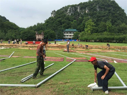 现场的各个工种都在有条不紊地进行着最后的准备工作,不管怎么说,原本担心的雨没有来,我们虽然被晒,但是心里很开心。