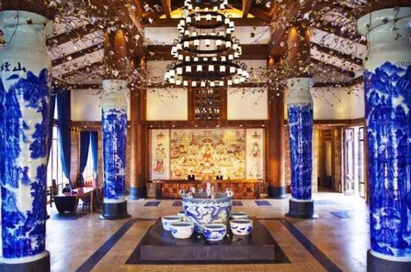 来到怡情谷温泉度假村大酒店,步入酒店大堂让人眼前一亮,酒店按当地五星级标准设计与建造,融入中国风和客家元素。看着古香古色,不禁想起青花瓷的歌词。
