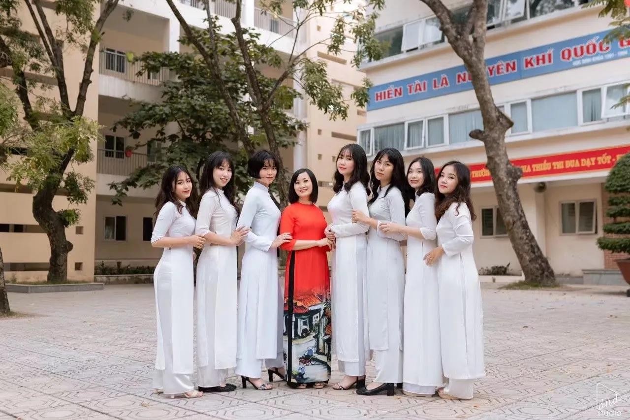 每逢周一,你就能看到大街上穿着白色奥黛的仙女们,骑着自行车在街上飘过~学生是必须穿统一白色的,放两张我侄女的毕业照,如下: