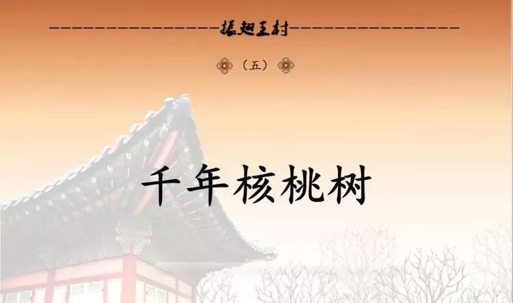 千年古核桃树:这棵树的位置是电视剧《初婚》的主景区,树龄据说“上千年”,树冠大而出名,树主干高仅有2米左右,但树的胸茎周长却有7米,需四五人环抱,就是其分枝也得二三人环抱,树冠直径约30米,东南西北四个方向有四大枝,其东南大枝横向伸出有近20米,犹如巨大的臂膀在向游人招手,整棵树枝叶繁茂,形成硕大树冠,遮阴半亩。这核桃树长在村中心,树下是村民祖祖辈辈午休纳凉的天然场所,在这里发生的故事励志而美好。在这充满神奇的大树庇护下,王村人才辈出,所以树产核桃有“状元果”之称,每年核桃成熟季节,人们都聚在树下捡核桃,吃核桃,经常会在学生入学或临考时赠送“状元果”,祝愿其智商高颖、考取功名。古树年代久远,庇护着一方水土风调雨顺,所以也是非常有名的“许愿树”,每到初一、十五人们在祈福带上写下自己的心愿,系在树上,向千年古树虔诚的许下自己的心愿,祈祷健康、平安!古核桃树远近驰名,正是这棵树的魅力,让丫丫影视公司以树为主景,把王村确定为影视基地,拍摄了农村题材电视剧《初婚》。