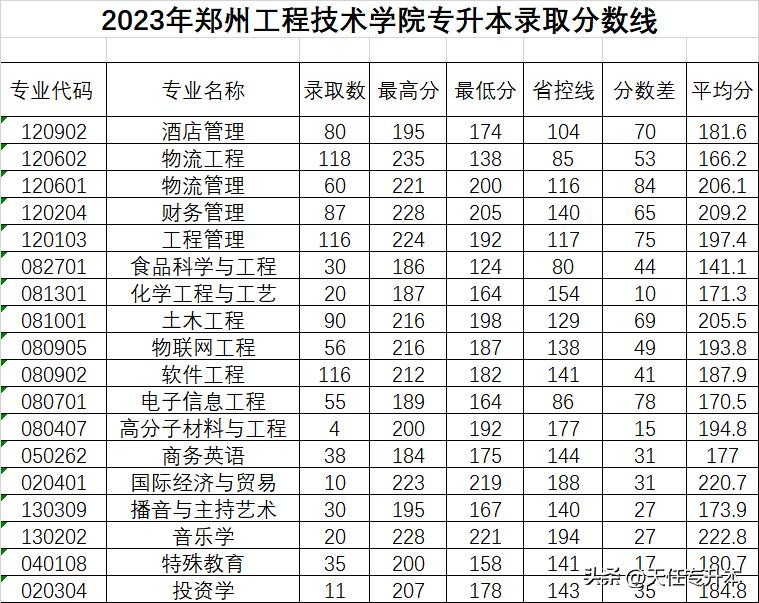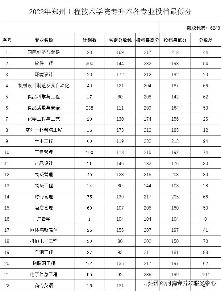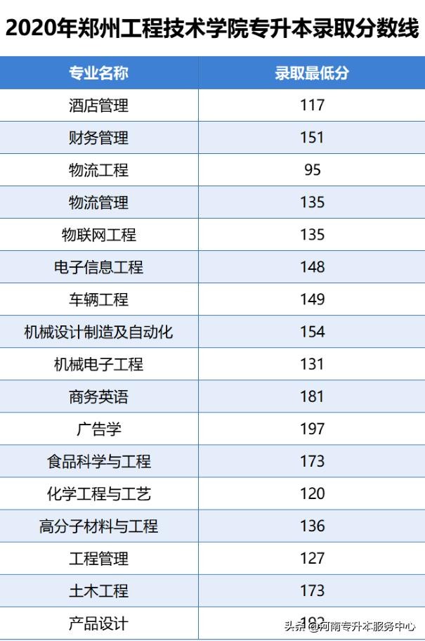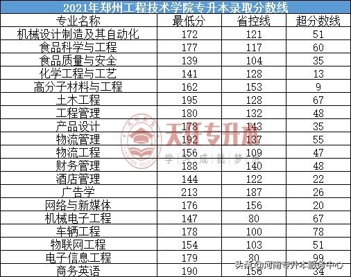 郑州工程技术学院2024年专升本招生专业及历年录取分数线