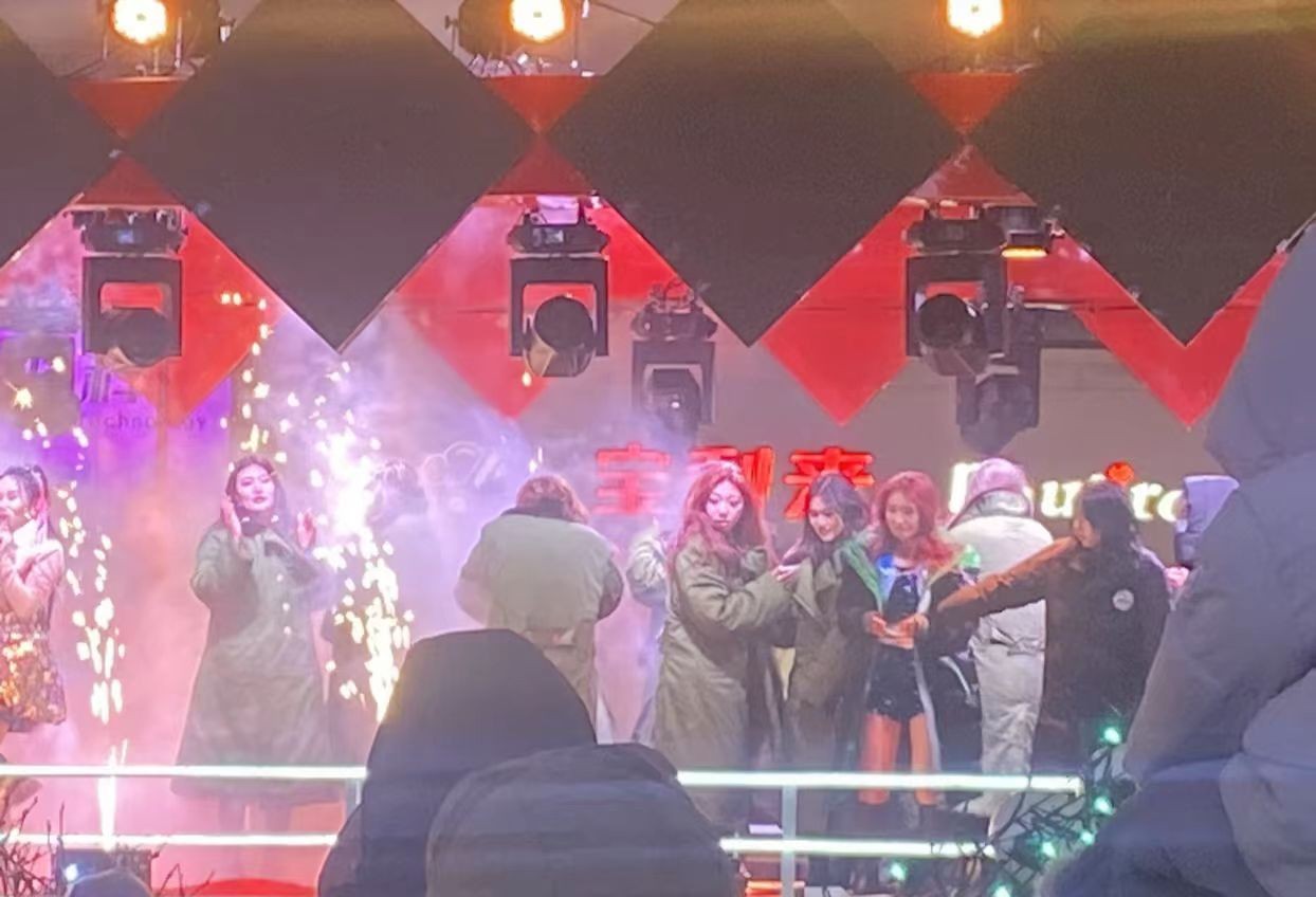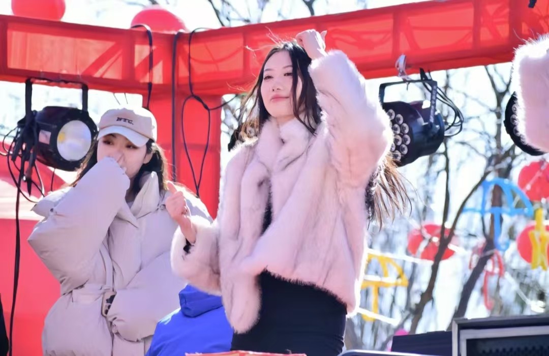 音乐响起,小姐姐们瞬间舞动起来,动作整齐划一,活力四溢。