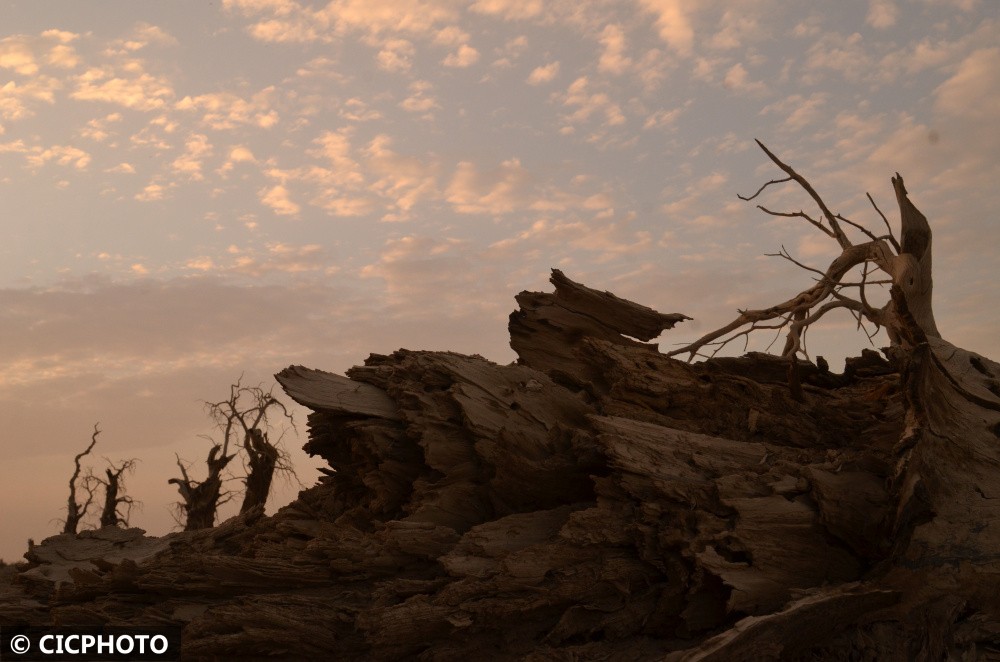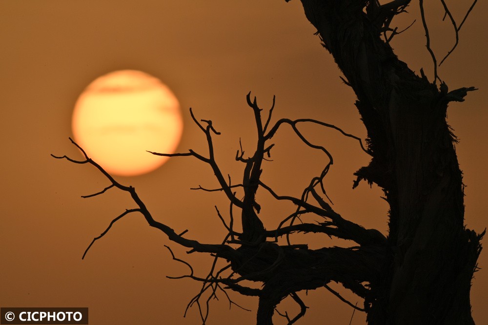 以上图片:2022年6月21日在新疆维吾尔自治区塔里木盆地边缘的轮台县拍摄的胡杨。CICPHOTO/确·胡热 摄