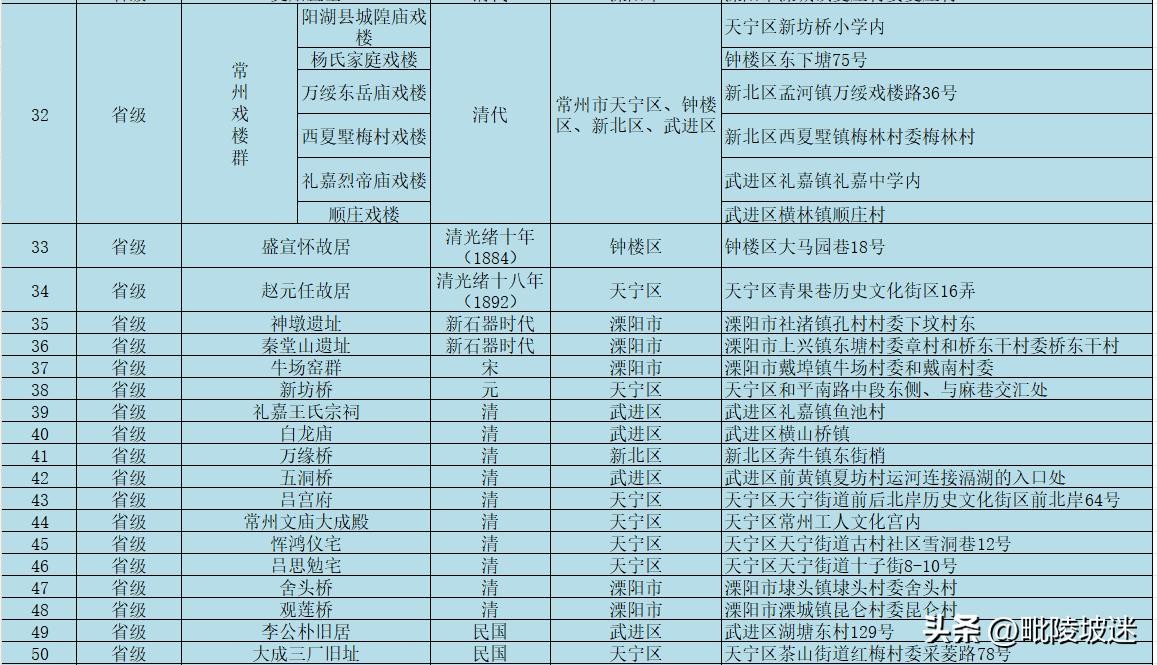 常州市文物保护单位名录(含国家,省级,市级)