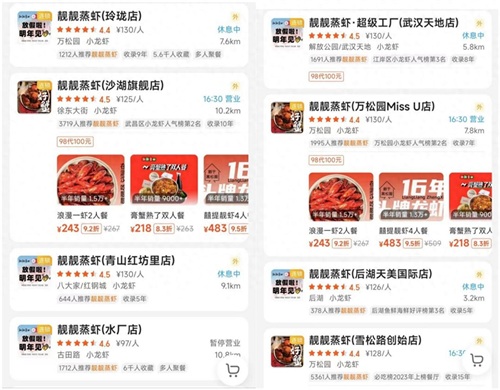 武汉6处靓靓蒸虾门店季节性歇业,工作人员:可查询APP前往其他门店用餐