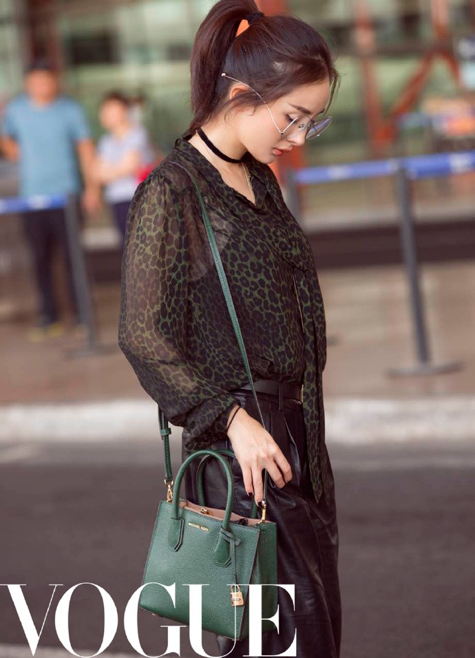2017春夏纽约时装周,杨幂豹纹印花衬衣和阔腿裤。眼镜,项链点睛之笔,时尚感十足。在穿搭这条路上,杨幂一直走在最前面。