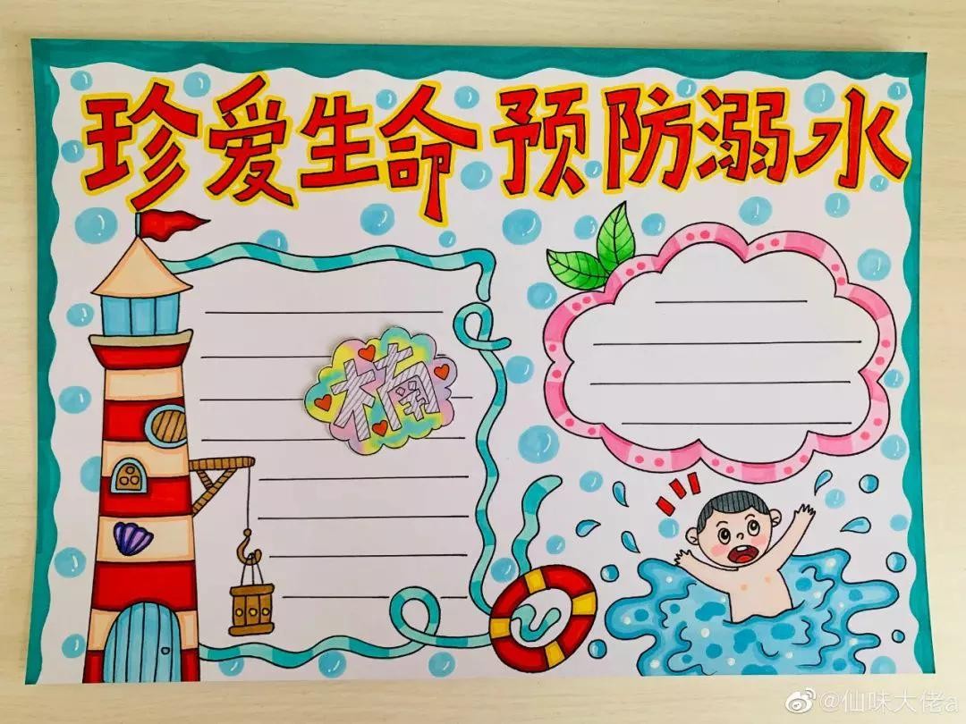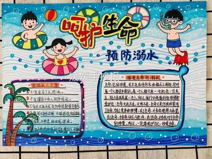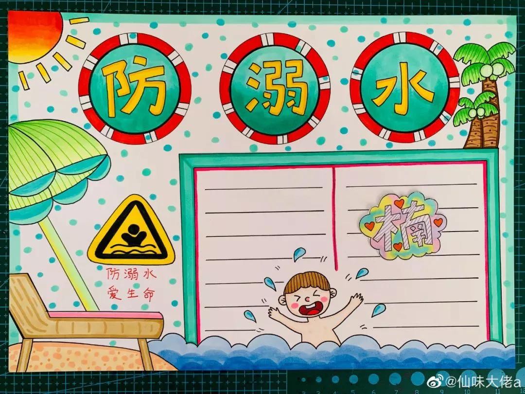 夏天炎热预防溺水安全教育手抄报绘画必不可少,收藏