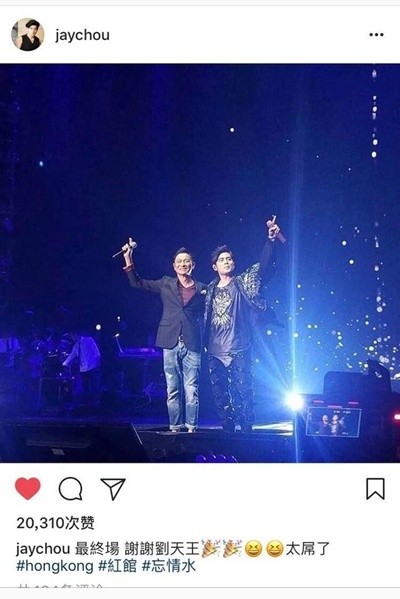 周杰伦在演唱会结束后,也在社交媒体上分享了这一喜讯,称:“jaychou 最终场,谢谢刘天王 太屌了”。