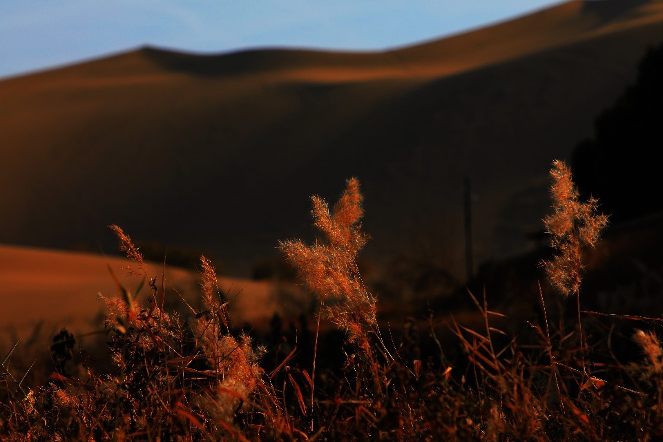 在碧绿的泉水边上!一丛微光,却使得格外养眼!干巴巴的树枝,似乎是冬眠了呢,可是芦苇花却还在低低矮矮地闪耀着!