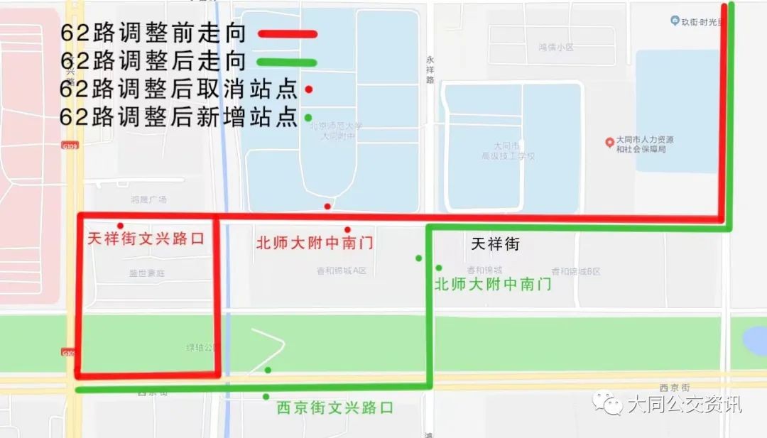 周知!大同公交62路线走向局部调整