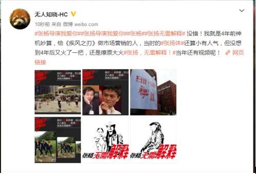 随着《张杨导演,我爱你》求爱微文的刷屏,引发了网友们翻天覆地的调侃和八卦……,更有好事博主,翻出四年前腾讯游戏《疾风之刃》的一套张扬体海报。据说该博主当年做的这套海报,其文案为“张扬无需解释”用来形容男主当下的境遇,再恰当不过!