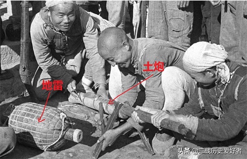 如上图,一群开开心心向记者展示自己武器装备的八路军民兵,只见他们的装备五花八门,各式各样,感觉什么都有,有地雷、有土炮、有土枪,甚至还有日军的手雷,如下图: