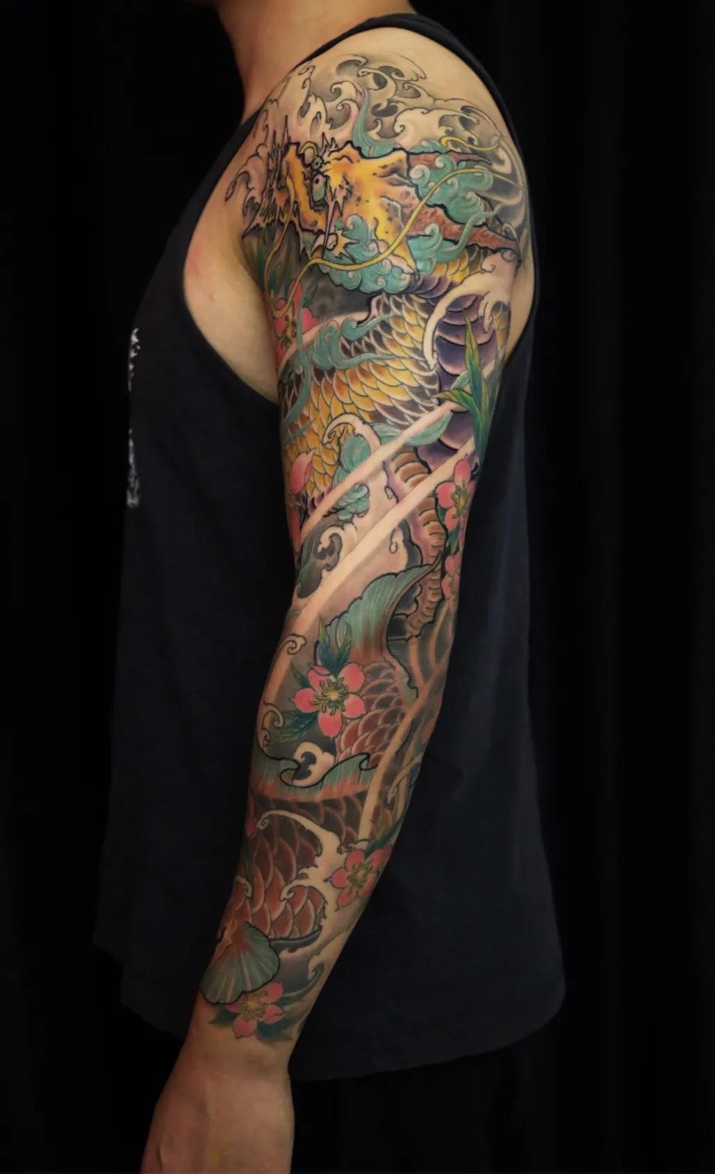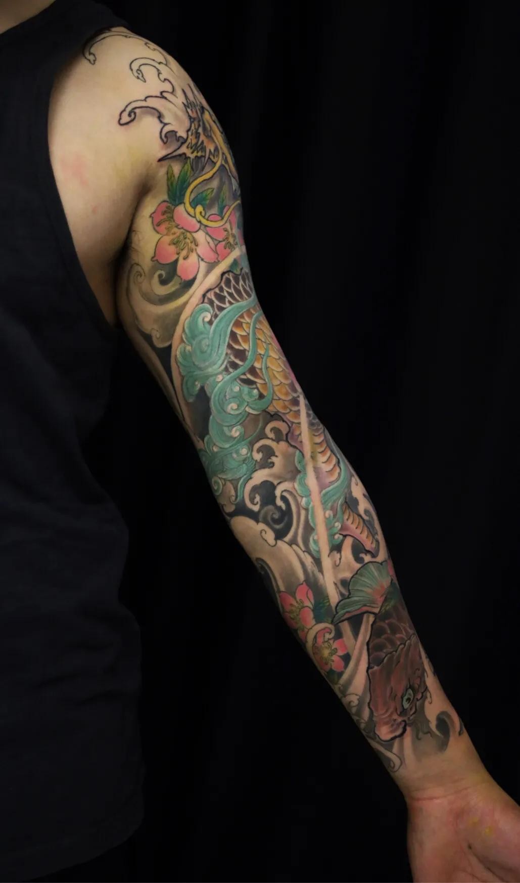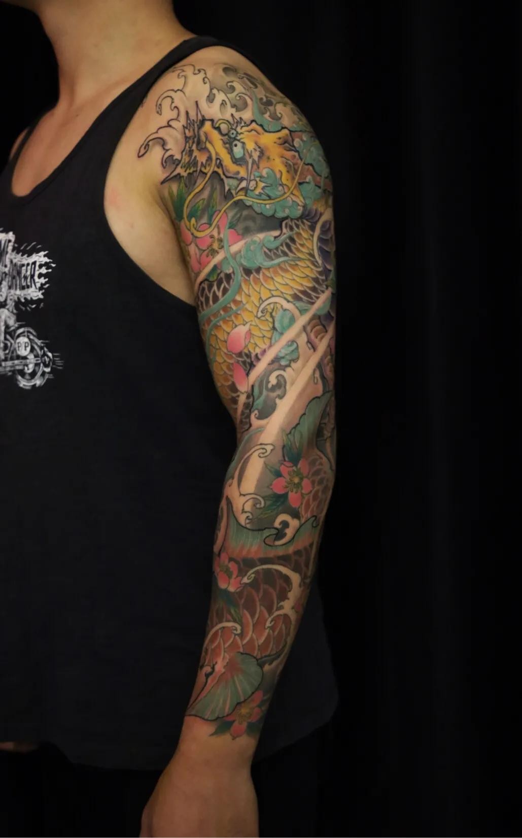 麒麟鲤鱼花臂纹身