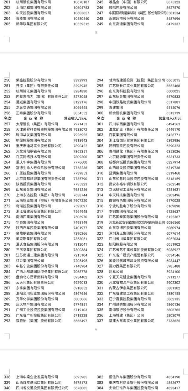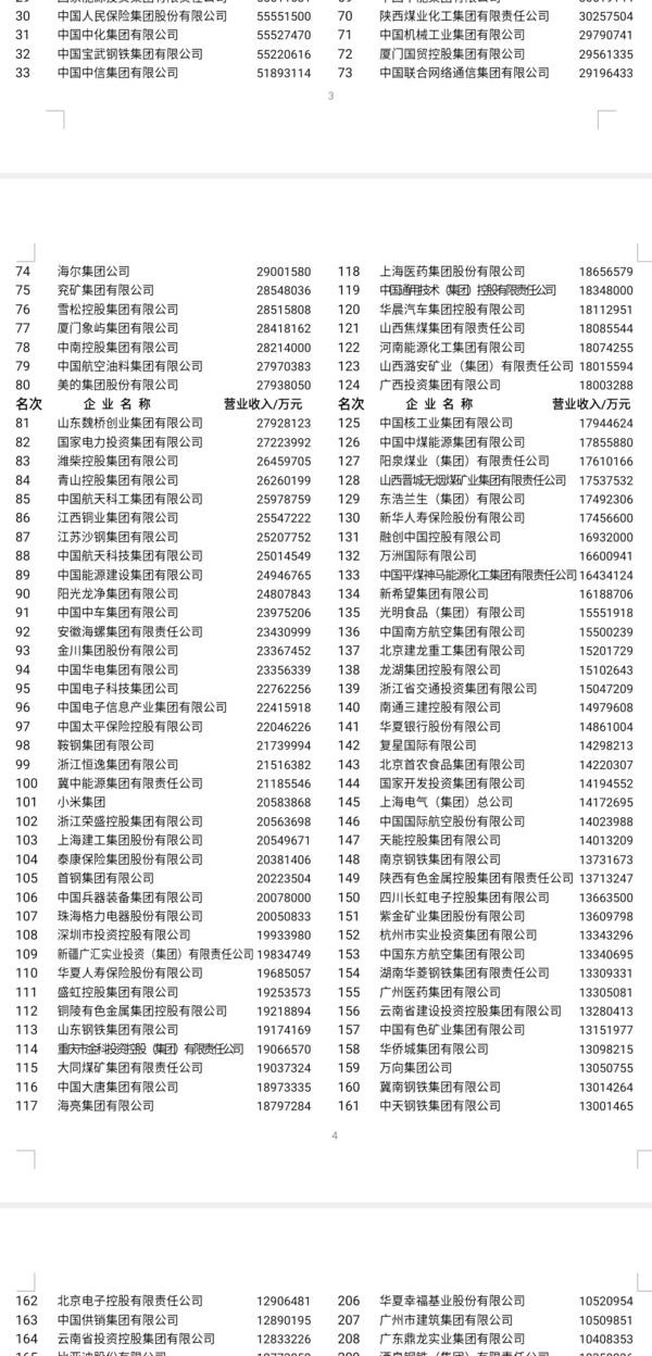 中国石油化工集团有限公司以2.81万亿元营收位居榜首,国家电网有限公司、中国石油天然气集团有限公司分别以2.65万亿元、2.62万亿元营收列第二、三名。其中,河南能源化工集团有限公司以1807.4亿元的营收位列河南第一,排名第122位。