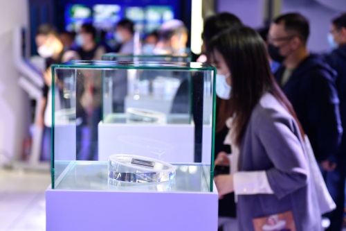 10月19日,观众在展馆观看一家中国企业自主研发的芯片。 新华社记者 黄宗治 摄