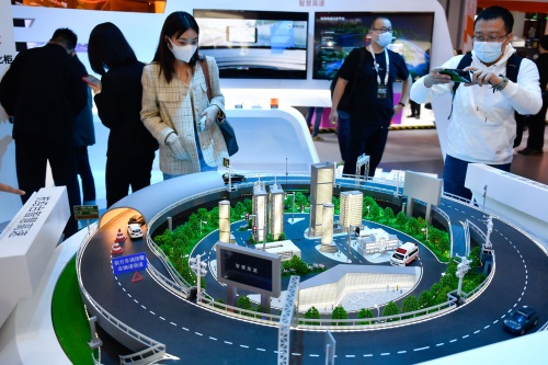 10月19日,观众在展馆参观智慧高速的演示模型。 新华社记者 黄宗治 摄