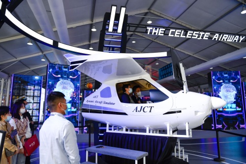 10月19日,观众在展馆体验模拟飞行。 新华社记者 黄宗治 摄