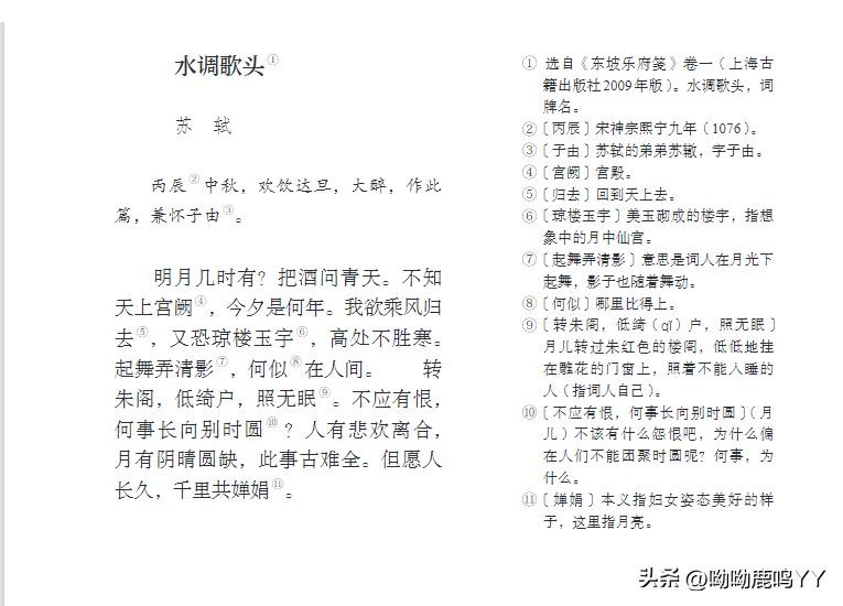 3.《水调歌头》是北宋文学家苏轼的一首著名词作,它以其豪放的风格和深邃的情感,深刻地表达了诗人对宇宙、人生哲理的思考和对亲人的深切思念。